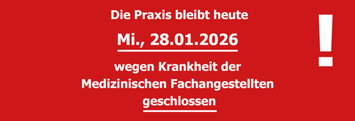 Es besteht in unserer Praxis weiterhin eine FFP2-Maskenpflicht, wenn Sie Infektanzeichen haben, bzw. die Infektsprechstunde besuchen! Bitte haben Sie Verständnis.